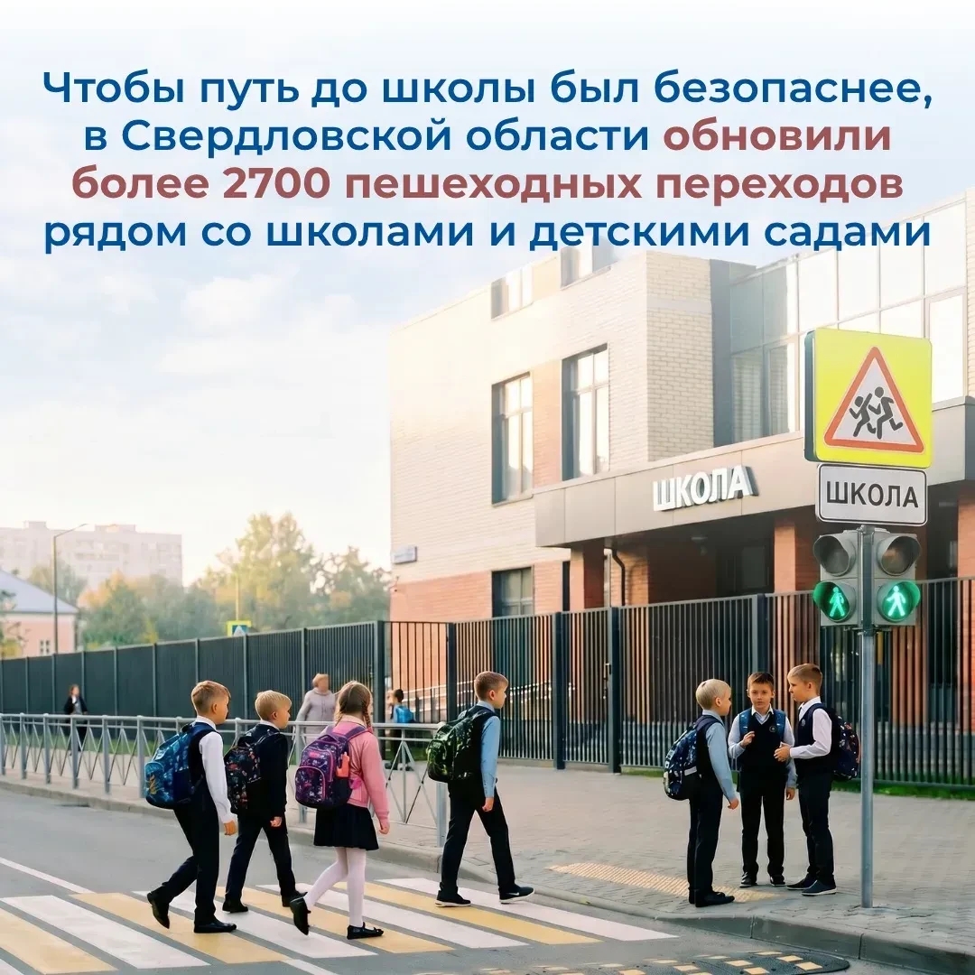 Каждый родитель хочет быть уверен, что его ребенок безопасно доберется до школы и потом по тому же маршруту вернется домой. В Свердловской области осуществляются все необходимые меры для этого. Для обеспечения высокого уровня безопасности в регионе было обновлено более 2700 пешеходных переходов.