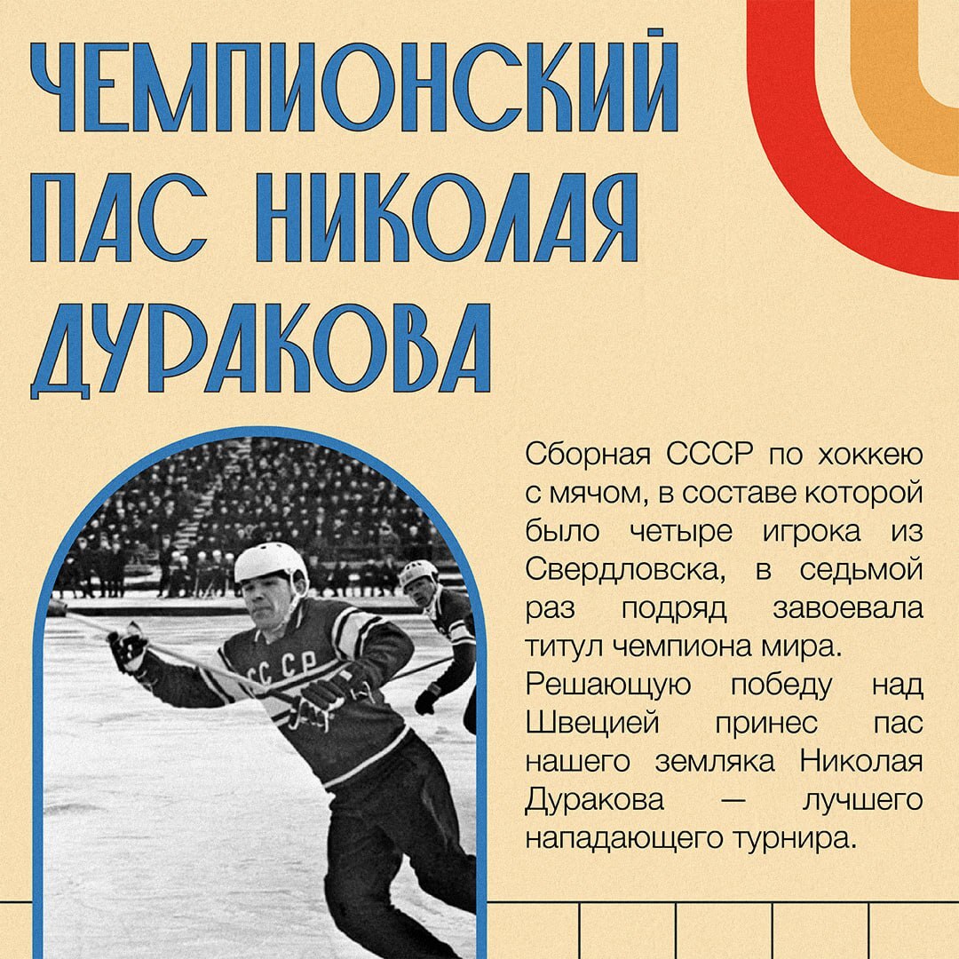 Весной 1971 года советская команда завоевала золото чемпионата мира в Швеции. В составе — сразу четверо игроков из Свердловска: Николай Дураков, Александр Измоденов, Владимир Тарасевич и вратарь Юрий Школьный.