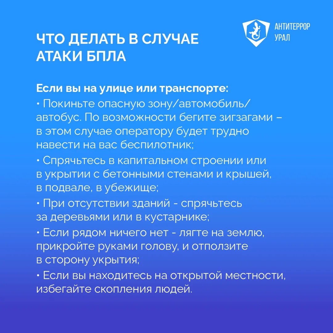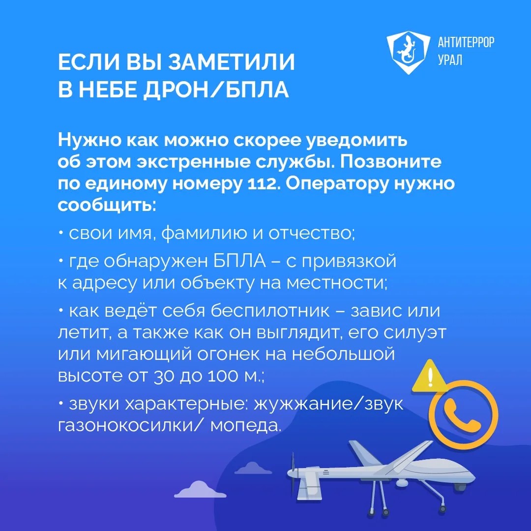 «Антитеррор Урал» разработал простые правила действий при объявлении режима «Беспилотная опасность».