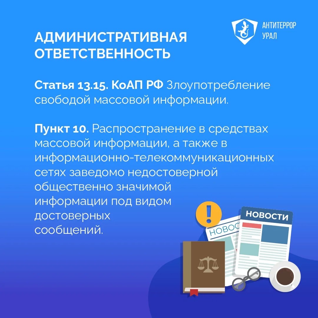 Напоминаем администраторам телеграм-каналов, сообществ в социальных сетях и представителям СМИ о наличии уголовной и административной ответственности за распространение недостоверной информации.