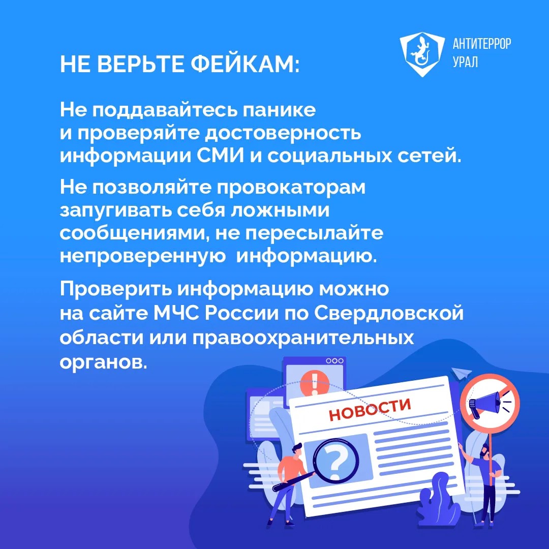 Критически относитесь к публикациям о появлении дронов в Свердловской области. Возможны попытки распространения фейковых фото и видео с целью посеять панику.