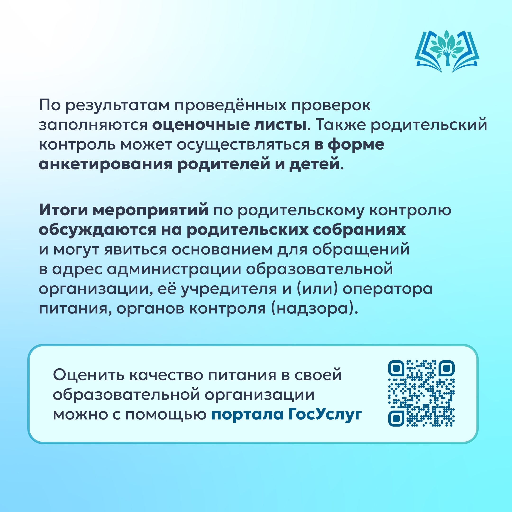 Оценить качество питания в своей образовательной организации можно с помощью портала Госуслуг (gosuslugi.ru/10090/1). Подробнее – в карточках.
