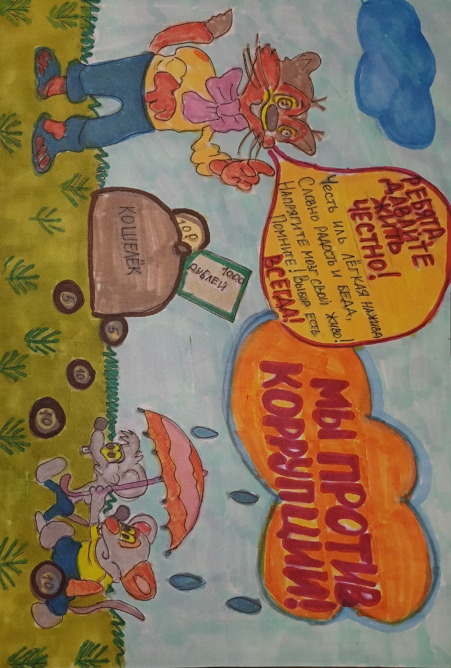 Мы благодарим всех участников конкурса за активное участие и творческий подход. Ваши рисунки наглядно демонстрируют ваше желание жить в справедливом обществе, свободном от коррупции. Продолжайте развивать свои таланты и будьте примером для окружающих!