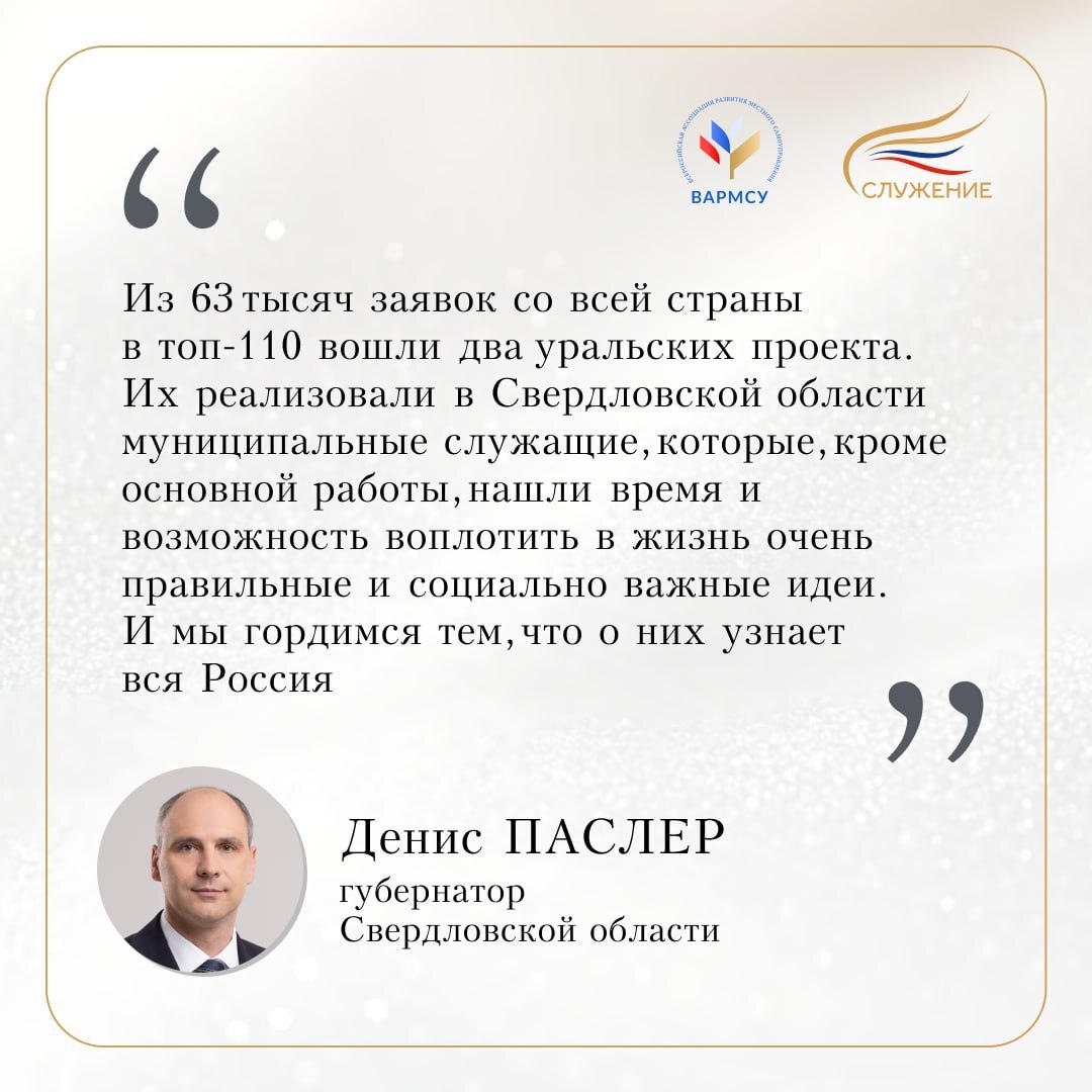 Уральские проекты «Громкие голоса малых городов ([#alias|pos.gosuslugi.ru/lkp/slujen...|https://pos.gosuslugi.ru/lkp/slujenie-2026/84/)»] (Мария Щербакова, Первоуральск) и «Школа семейного волонтерства «Сила в семье» ([#alias|pos.gosuslugi.ru/lkp/slujen...|https://pos.gosuslugi.ru/lkp/slujenie-2026/218/)»] (Александра Воробьева, Березовский) вошли в топ-110 III Всероссийской муниципальной премии «Служение», которая проводится Всероссийской ассоциацией развития местного самоуправления при поддержке администрации Президента РФ.