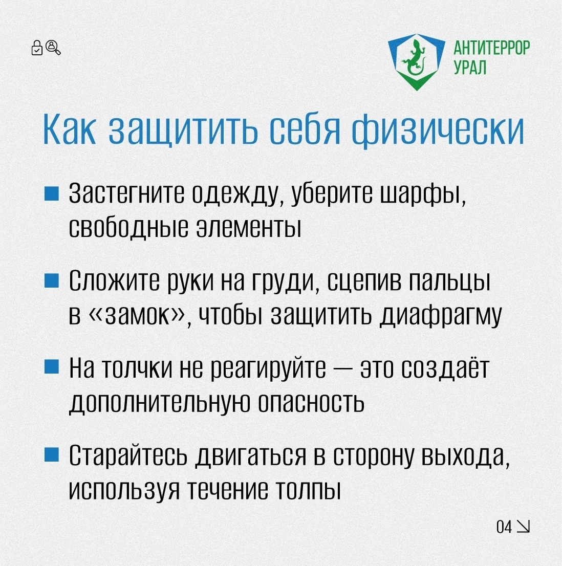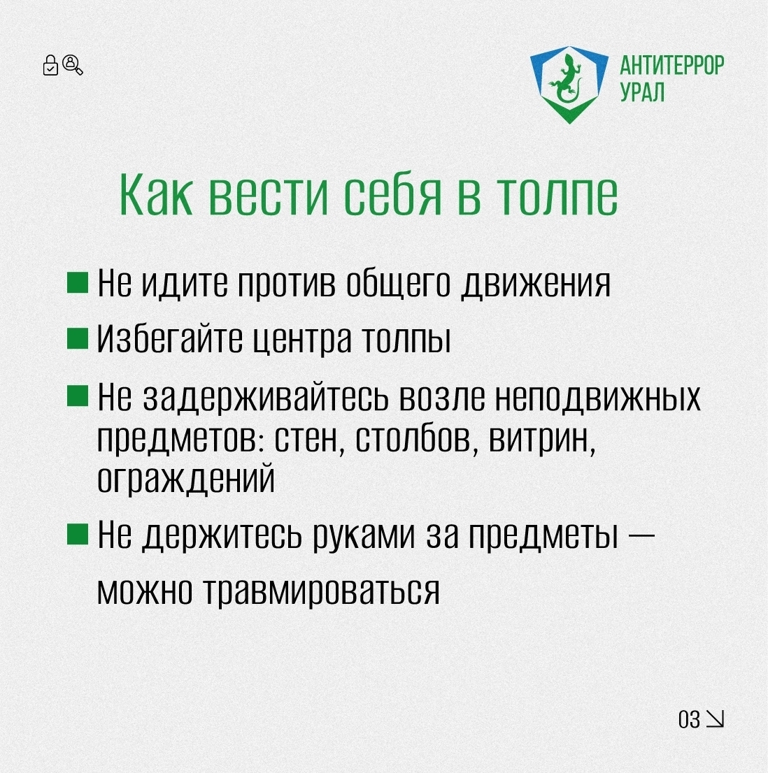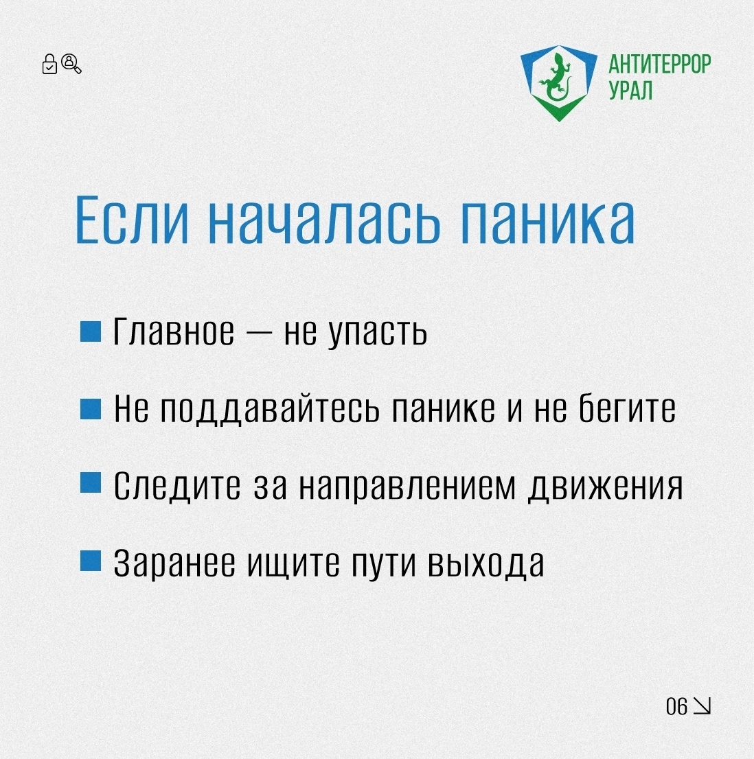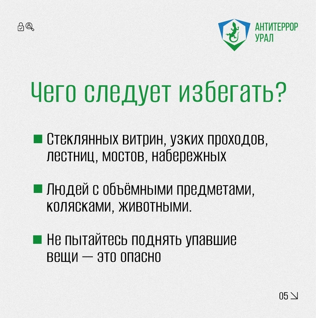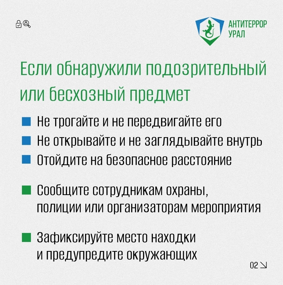 «Антитеррор Урал» рассказал в карточках, как правильно действовать при обнаружении бесхозных предметов и в случае давки в общественном месте.