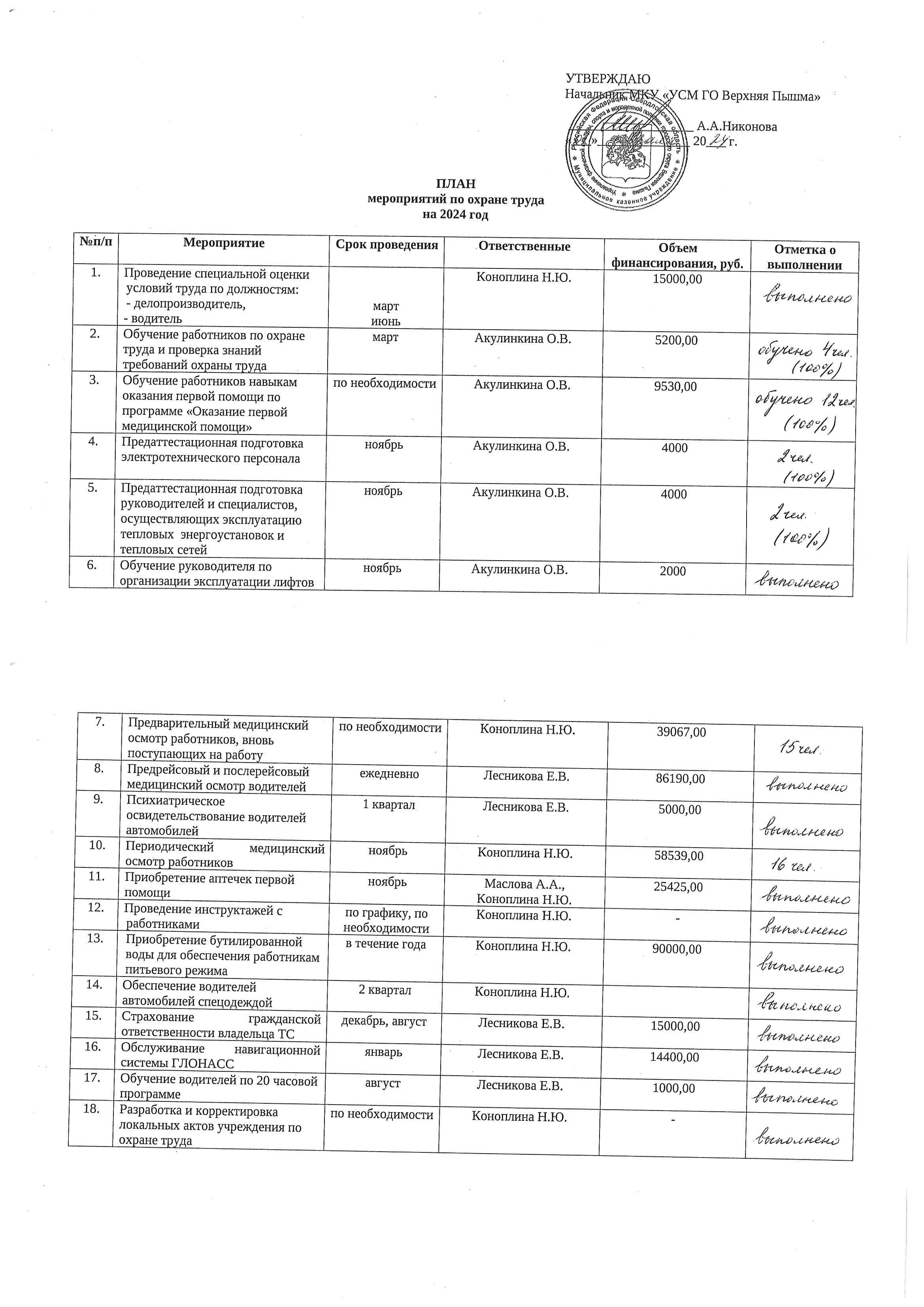 План мероприятий по охране труда на 2024 год