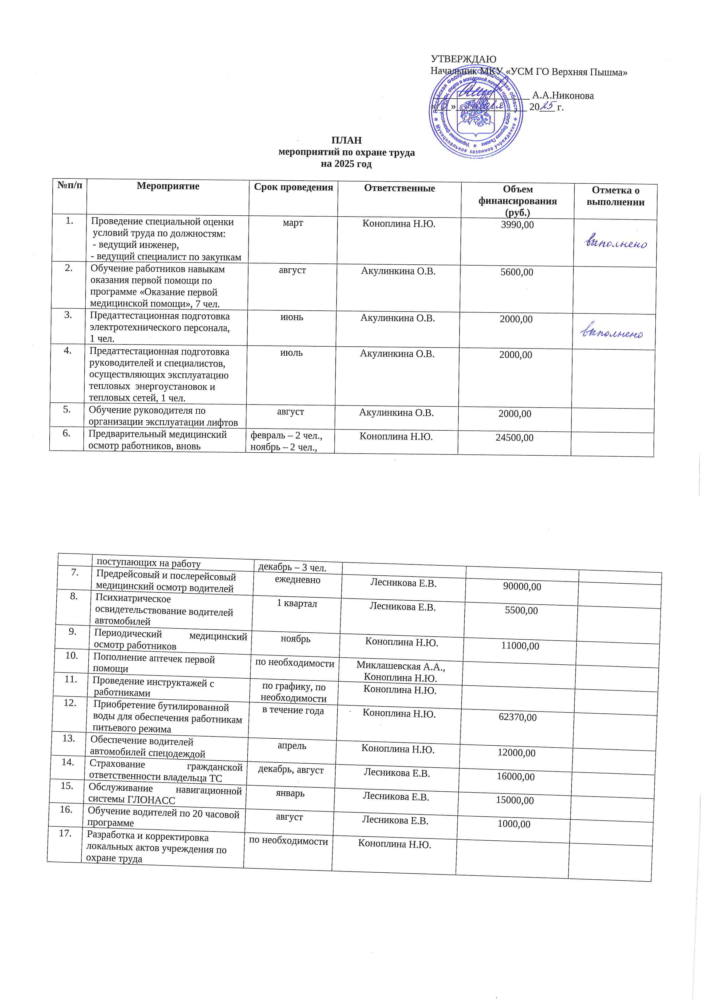 План мероприятий по охране труда на 2025 год