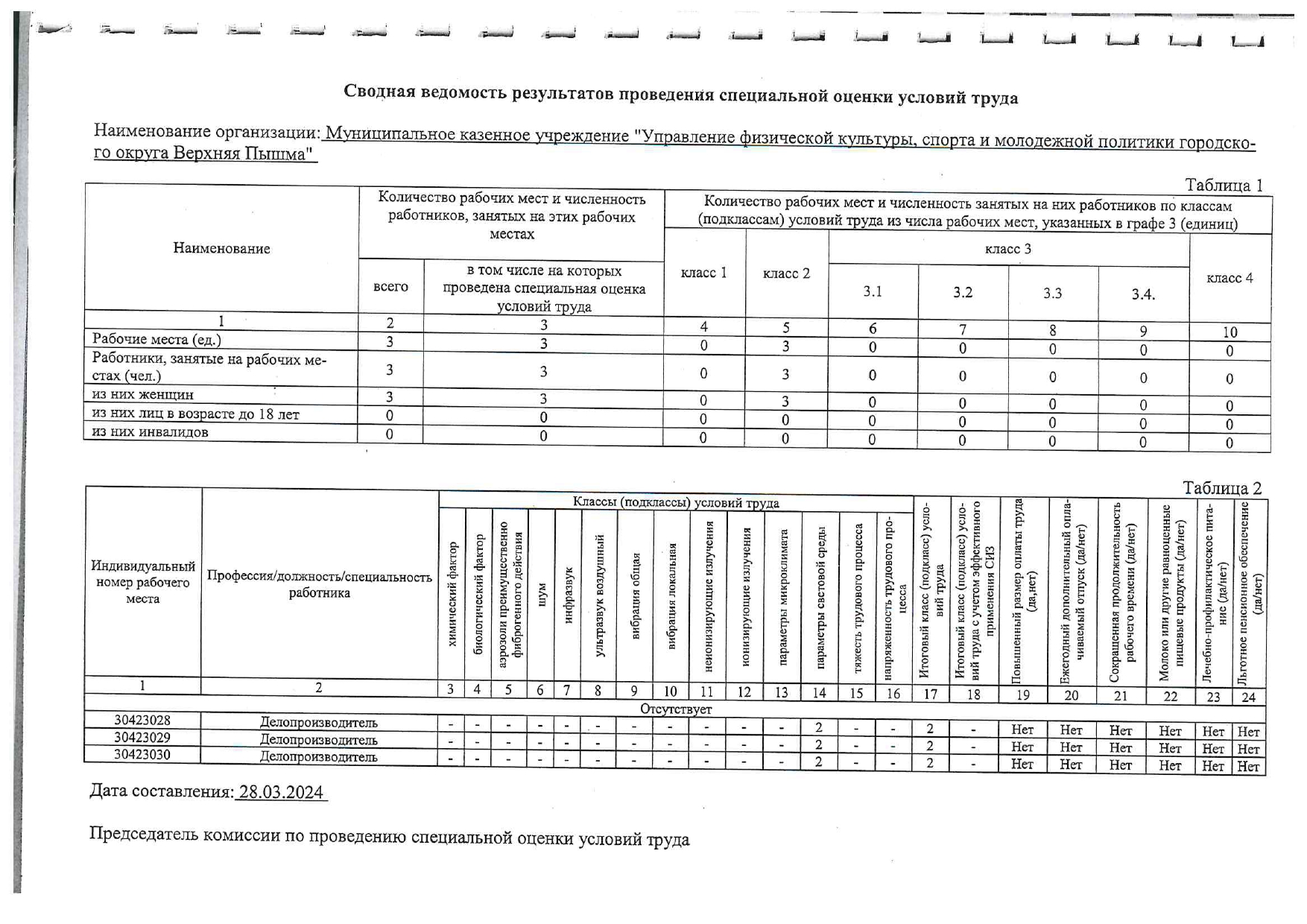 12. Карты оценки уровня профессиональных рисков.